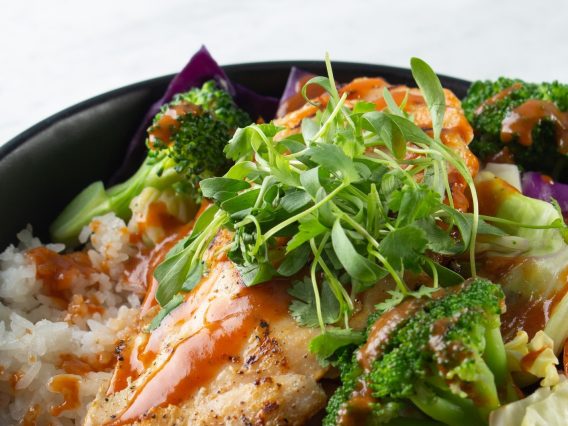 Serves 2 people Ingredients 2 medium sized boneless skinless chicken breasts 1 C white rice 1/2 C Mad House Farms Cilantro Microgreens 1 C broccoli lightly steamed 1 C chopped green & purple cabbage 1 Tbsp Mayonnaise 1 Tbsp Sriracha sauce Garlic powder, salt and pepper to season Soy sauce to taste Prep Instructions Preheat […]